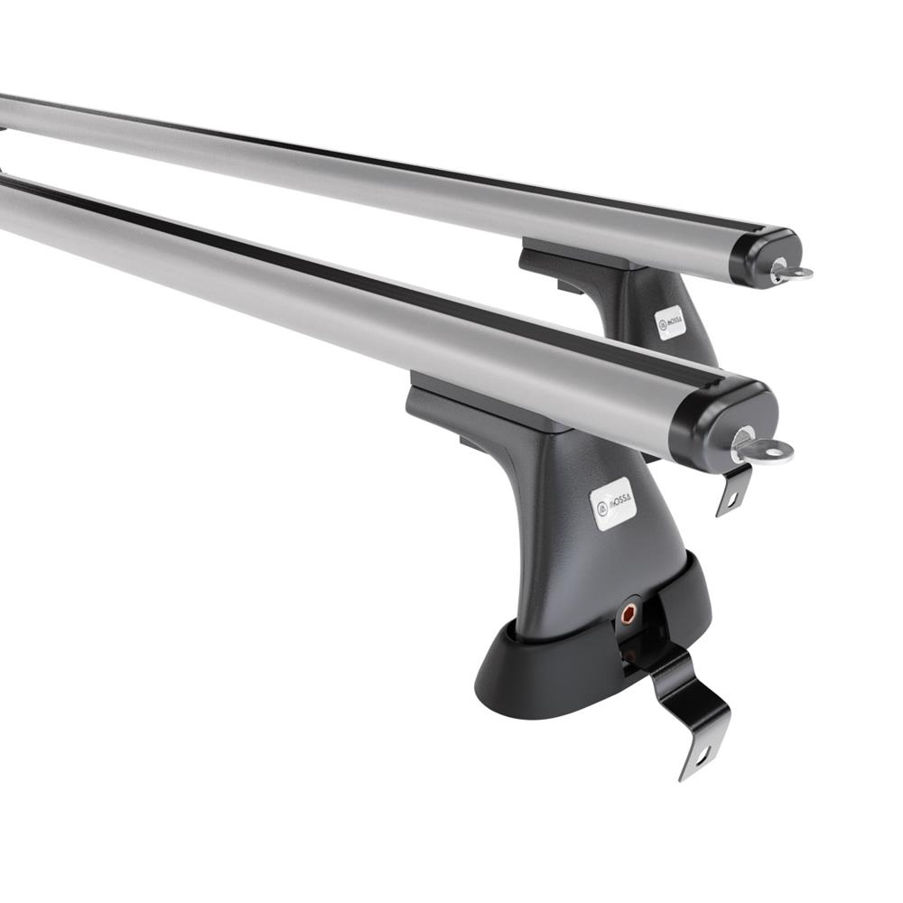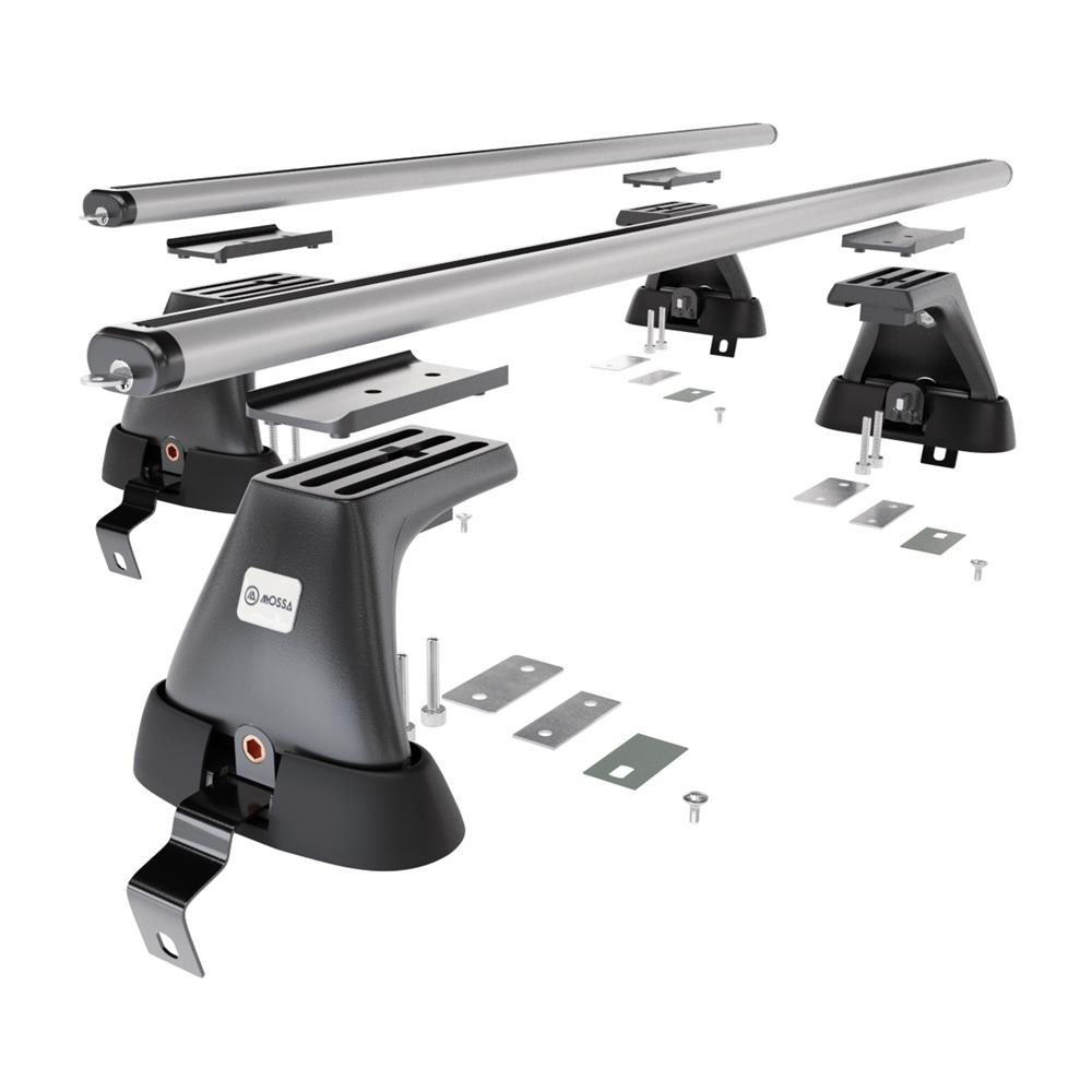 - 4 Fußsätze (Halter) – für standardmäßige Dächer ohne werkseitige Fixpunkte – Montage am Dachrand, Tragfähigkeit 75 kg (oder gem. Empfehlungen des Fahrzeugherstellers).