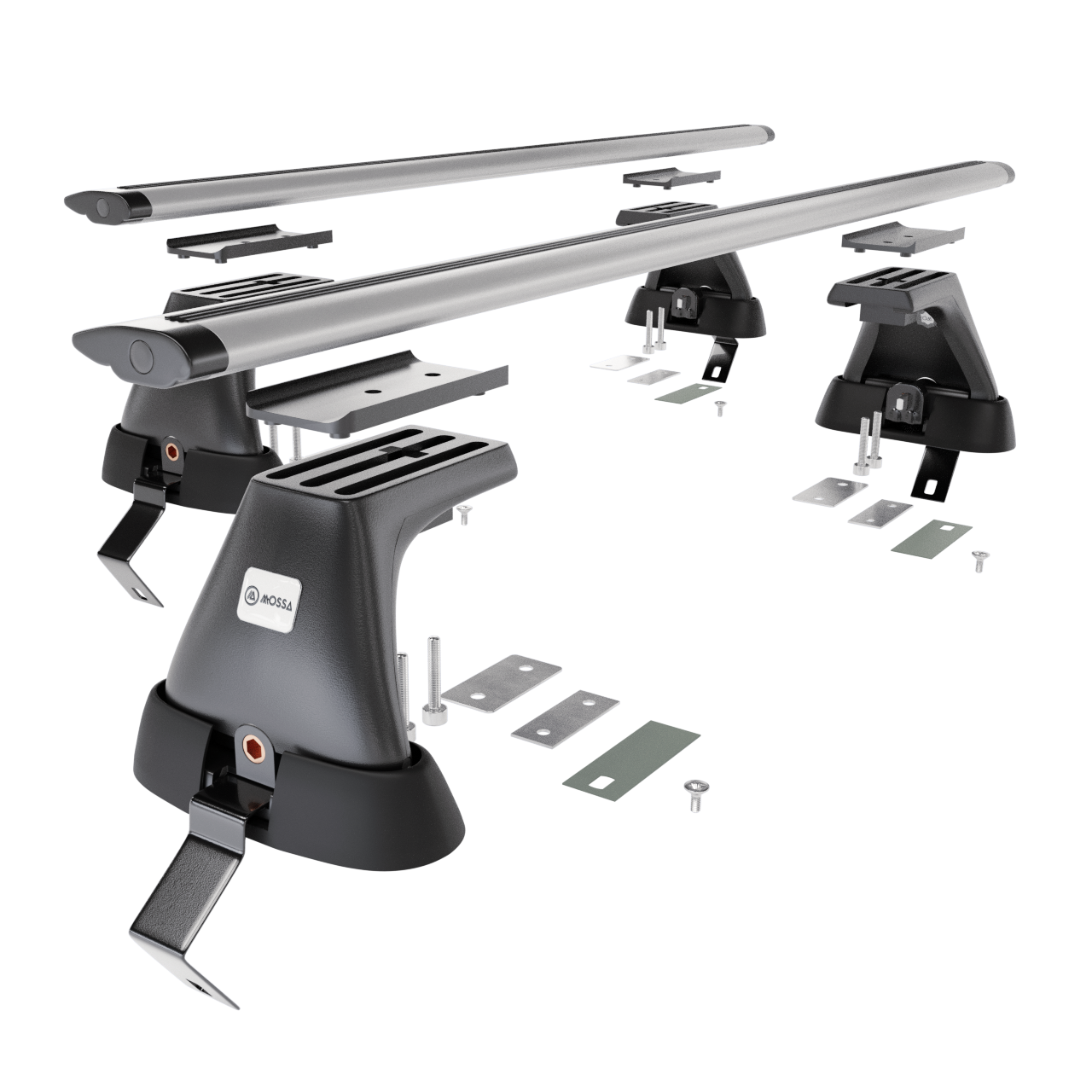 - 4 Fußsätze (Halter) – für standardmäßige Dächer ohne werkseitige Fixpunkte – Montage am Dachrand, Tragfähigkeit 75 kg (oder gem. Empfehlungen des Fahrzeugherstellers).