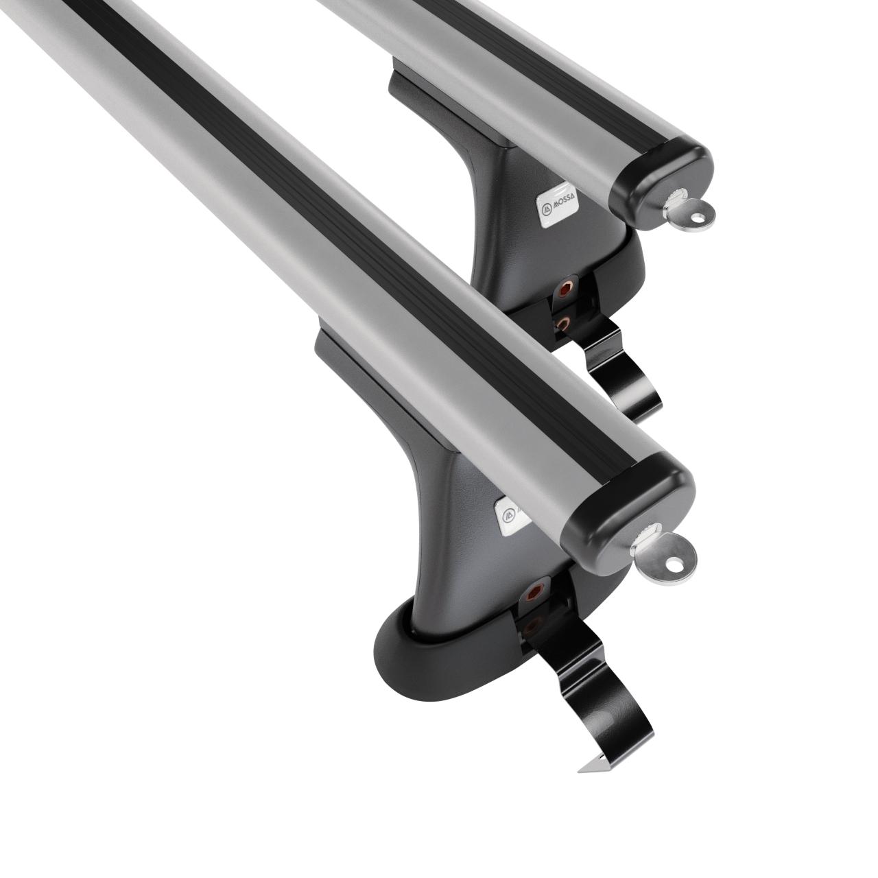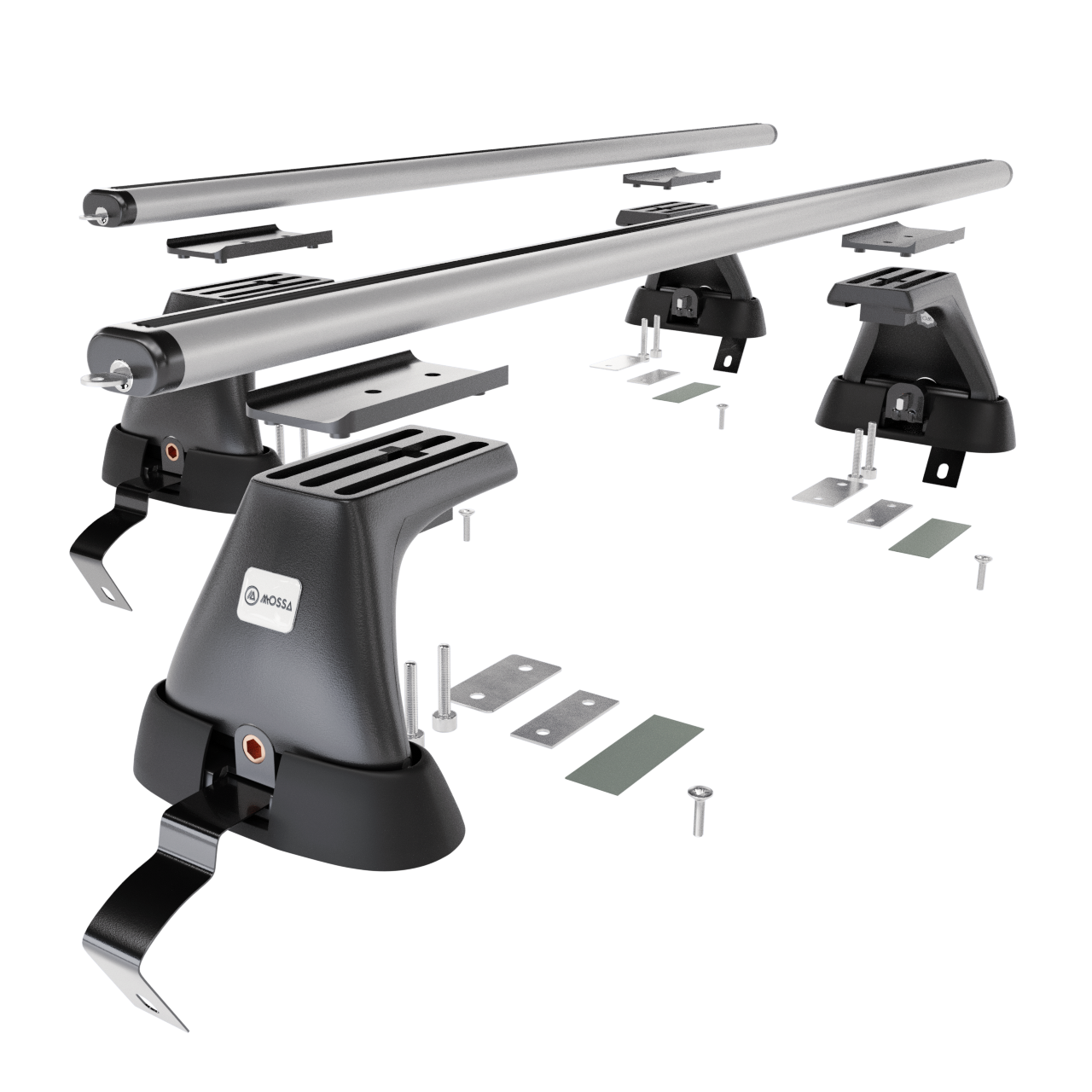 - 4 Fußsätze (Halter) – für standardmäßige Dächer ohne werkseitige Fixpunkte – Montage am Dachrand, Tragfähigkeit 75 kg (oder gem. Empfehlungen des Fahrzeugherstellers).