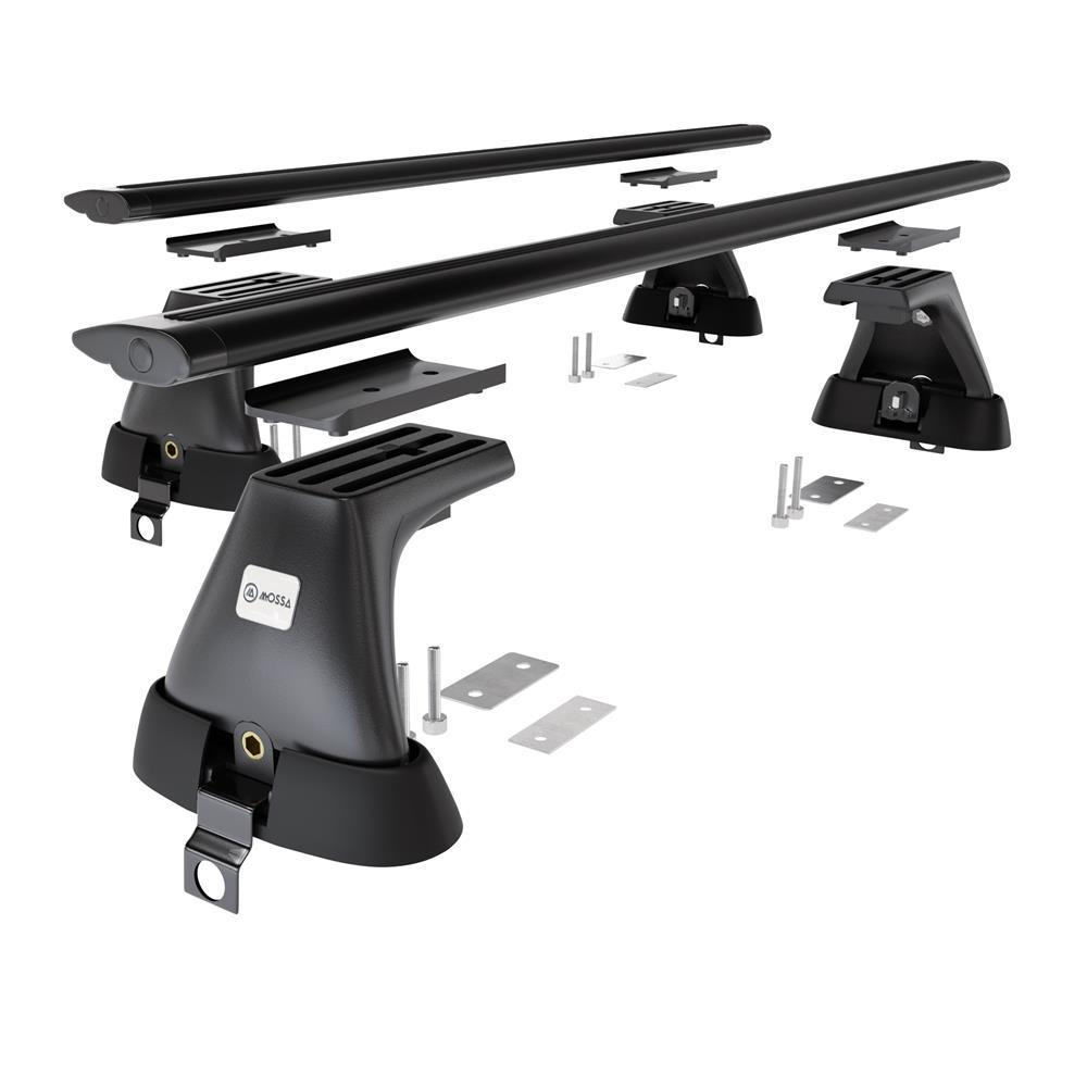 - 4 Fußsätze (Halter) – für standardmäßige Dächer ohne werkseitige Fixpunkte – Montage am Dachrand, Tragfähigkeit 75 kg (oder gem. Empfehlungen des Fahrzeugherstellers).