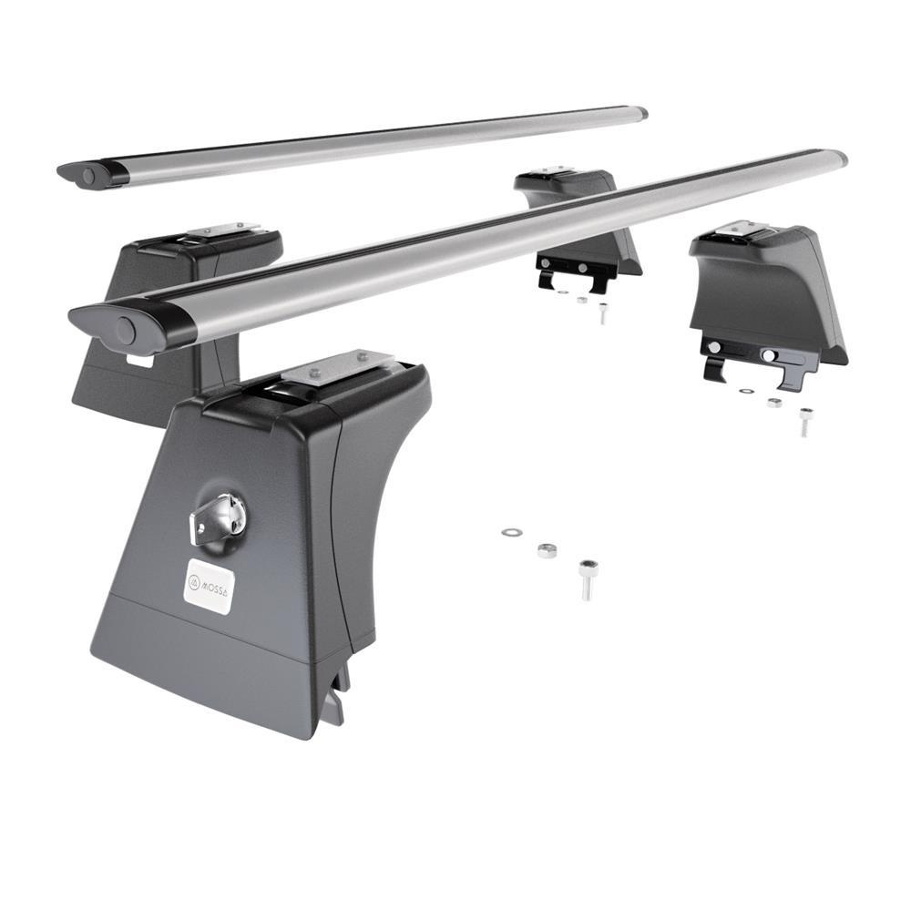 - 4 Fußsätze (Halter) – für Dächer mit werkseitigen Fixpunkten (die Verteilung kann abhängig vom Fahrzeugtyp variieren), Tragfähigkeit 75 kg (oder gem. Empfehlungen des Fahrzeugherstellers).