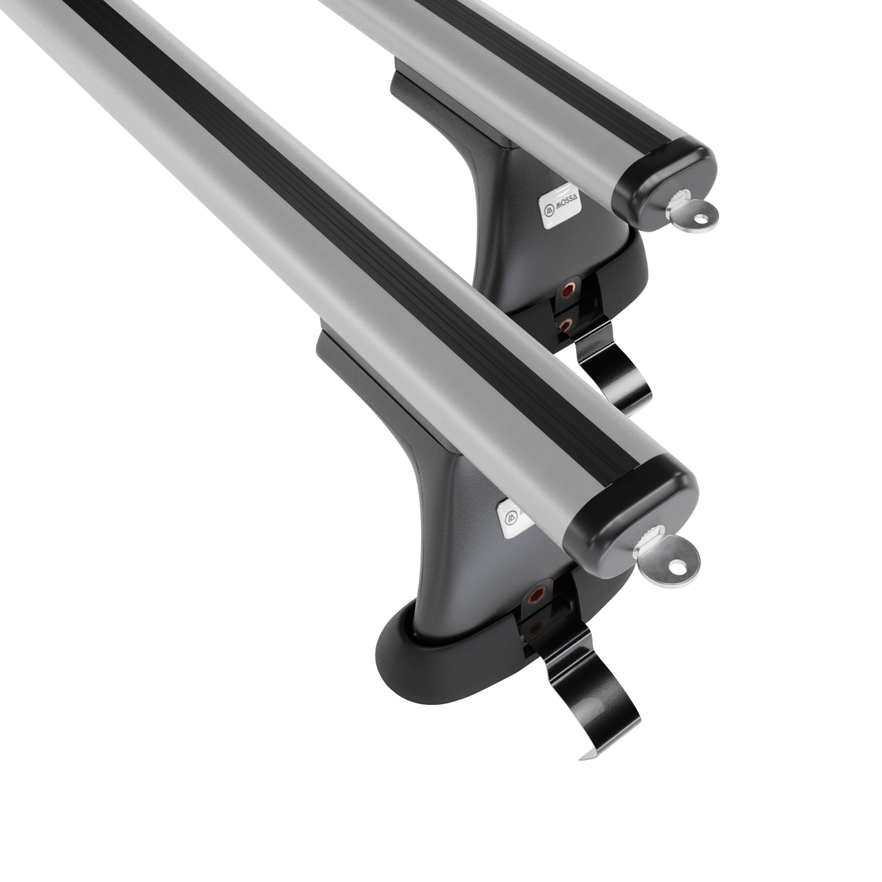 - 4 Fußsätze (Halter) – für standardmäßige Dächer ohne werkseitige Fixpunkte – Montage am Dachrand, Tragfähigkeit 75 kg (oder gem. Empfehlungen des Fahrzeugherstellers).