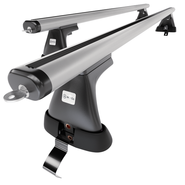 - Der Basisdachträger besteht aus 2 soliden Alubalken und 4 Haltern (sog. Fußsätze), die an den Typ und Generation des Fahrzeugs angepasst sind.