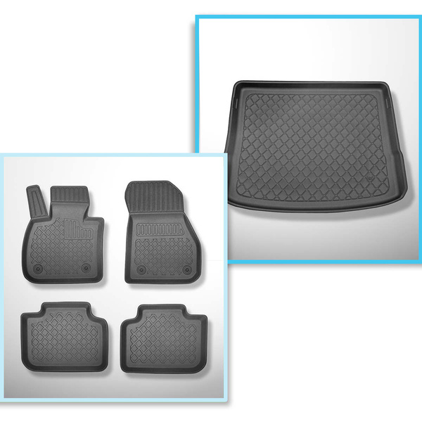 Set Kofferraumschale und angepasste Autoteppiche TPE für: BMW 2er F45 Active Tourer (09.2014-10.2021) - Rückbank starr / nicht verschiebbar; auch für Hybriden