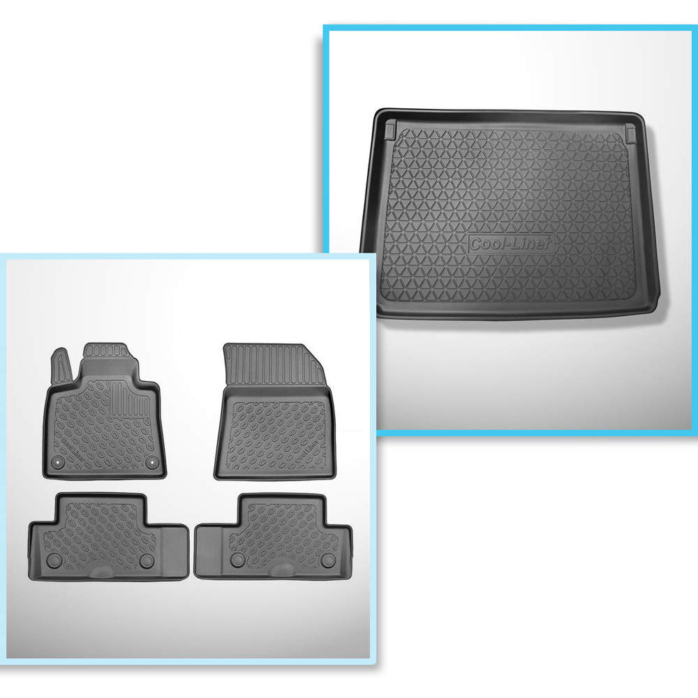 Set Kofferraumschale und angepasste Autoteppiche TPE für: Citroen C4 Picasso II MPV (07.2013-11.2020) - 5 Sitze;oberer Kofferraum (flacher Boden im Kofferraum);ohne 3. Sitzreihe