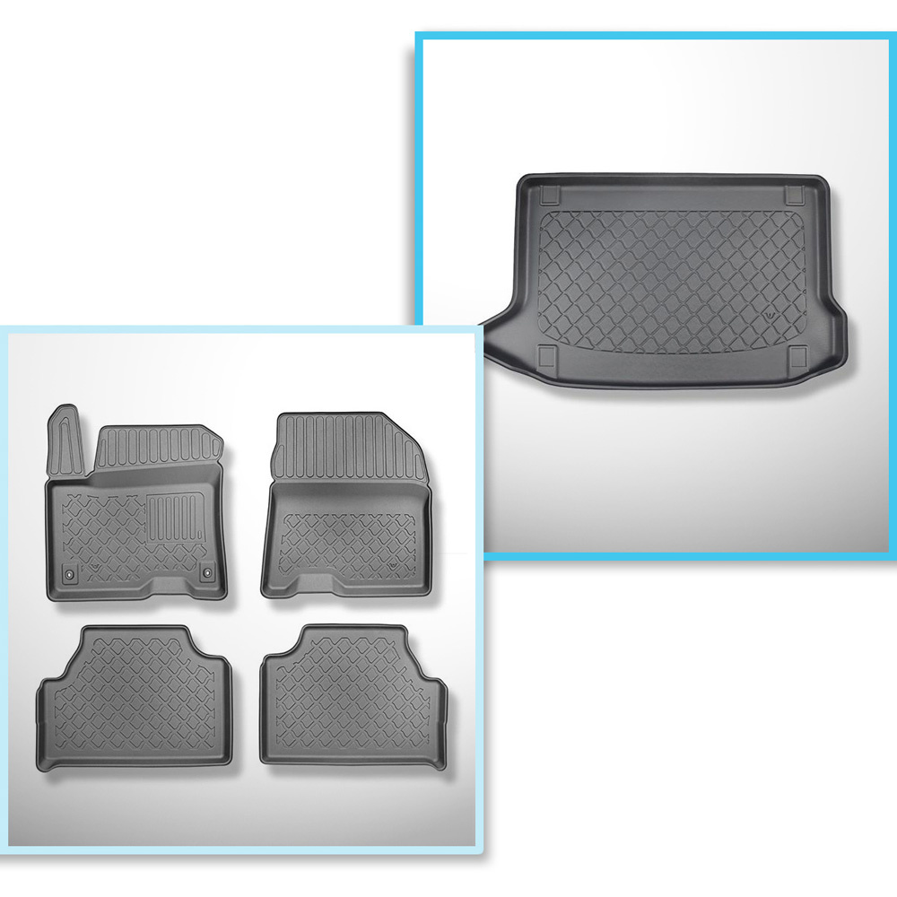 Set Kofferraumschale und angepasste Autoteppiche TPE für: Hyundai Kona electric SUV (08.2018-03.2023) - nicht für Hybride Versionen