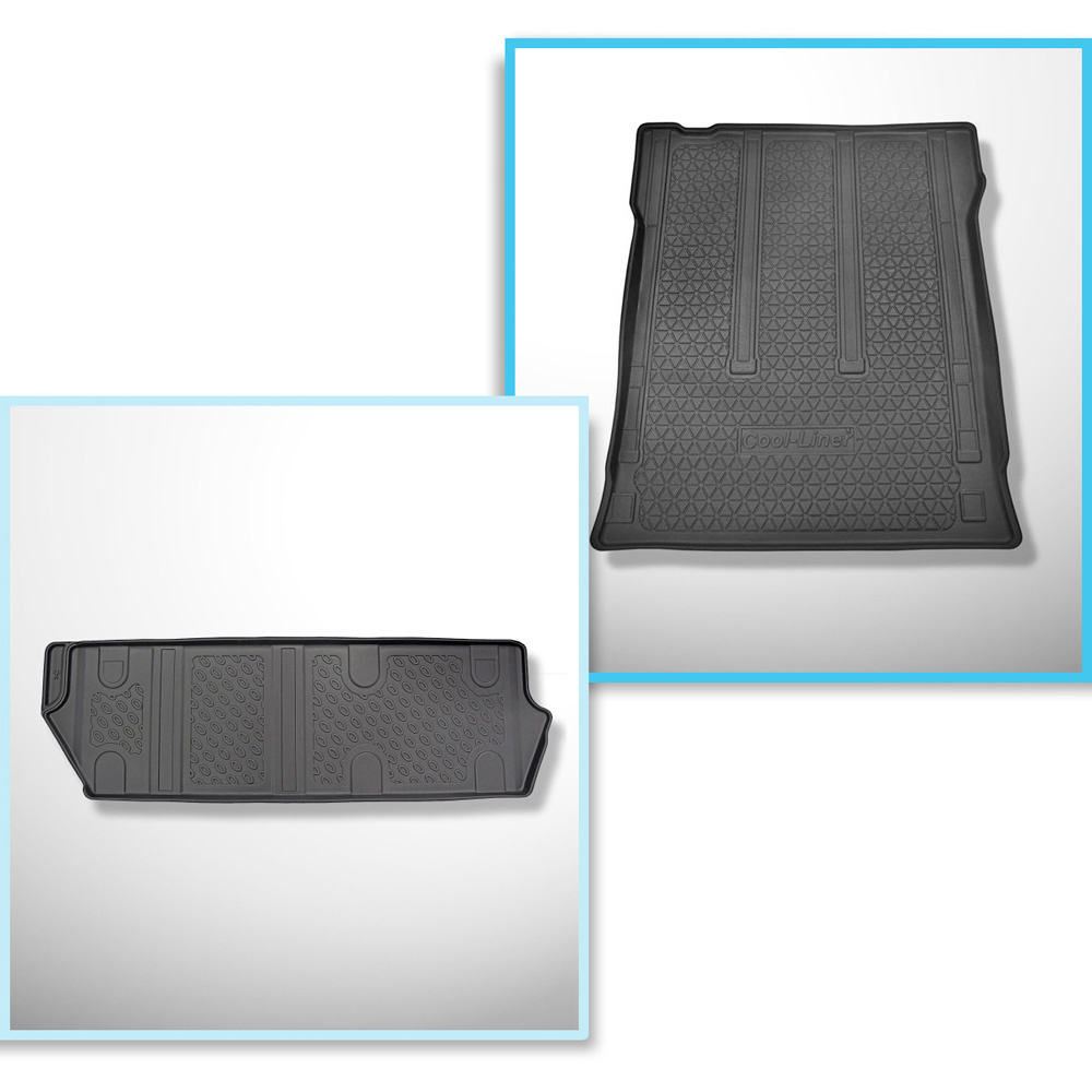 Set Kofferraumschale und angepasste Autoteppiche TPE für: Mercedes-Benz Vito W447 Tourer (10.2014-....) - hinter der 2. Sitzreihe (3. Sitzreihe im Auto oder herausgenommen);lange Version (Radstand 3.200 mm;Autolänge 5.140 mm);nicht verschiebbare Sitze, au