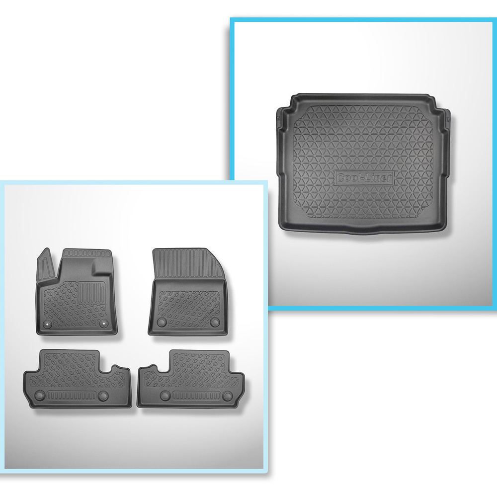 Set Kofferraumschale und angepasste Autoteppiche TPE für: Peugeot 3008 II SUV (11.2016-11.2023) - untere Ladefläche mit Vorbereitung für den Varioboden;unter / ohne beweglichen Boden (Flex Floor) im Kofferraum;nicht für Hybride Versionen;mit Hi-Fi-System