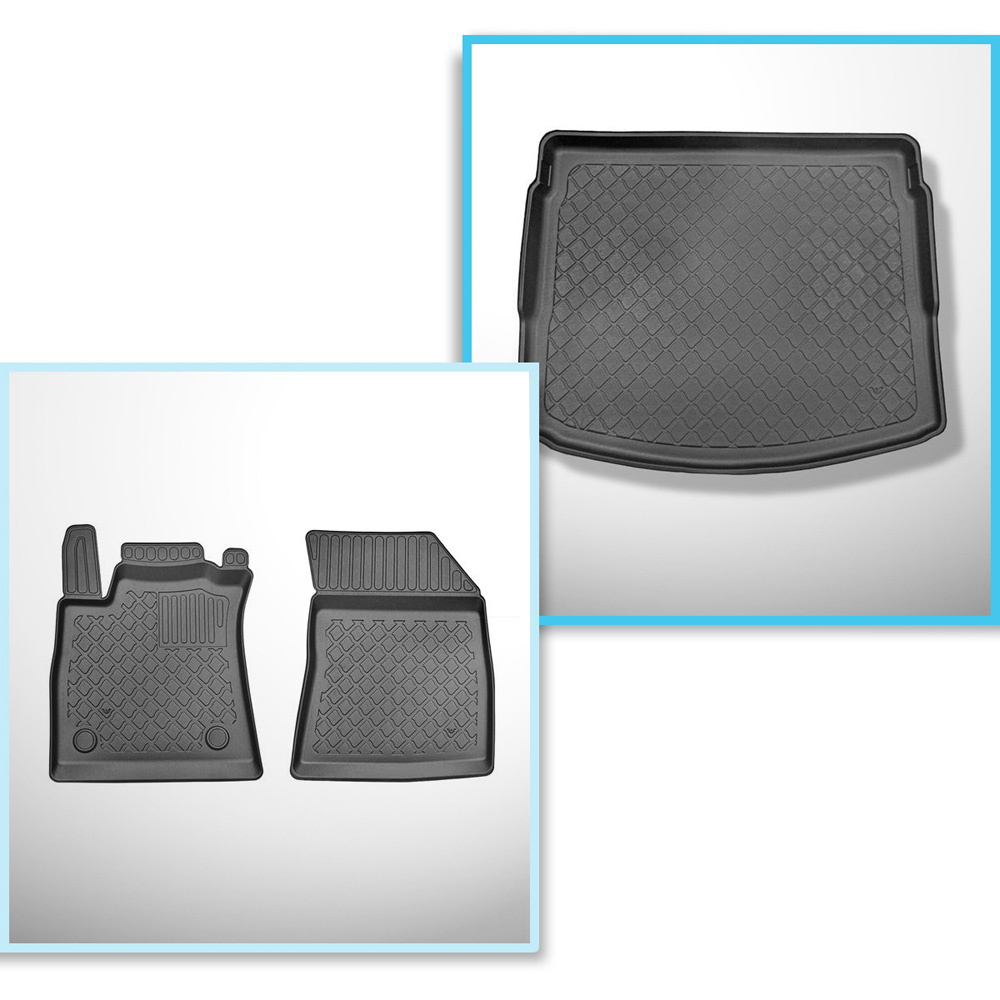 Set Kofferraumschale und angepasste Autoteppiche TPE für: Renault Megane IV Grandtour (09.2016-2024) - oberer Kofferraum (ebene Schwelle);beweglicher Boden in höchster Stellung;nicht für E-Tech Plug-in Hybrid
