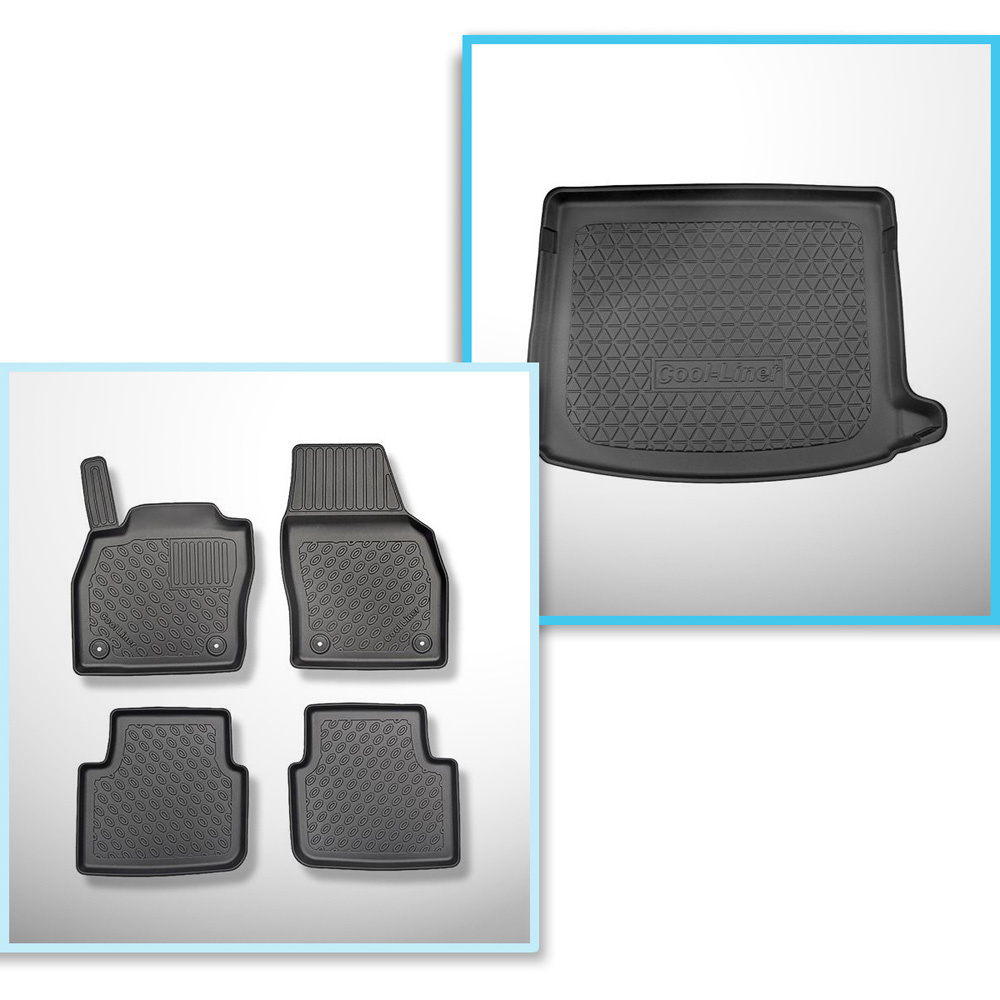 Set Kofferraumschale und angepasste Autoteppiche TPE für: Skoda Scala Crossover (04.2019-....) - oberer Kofferraum (für Multiboden);mit variablem Ladeboden im hoechsten Ebene
