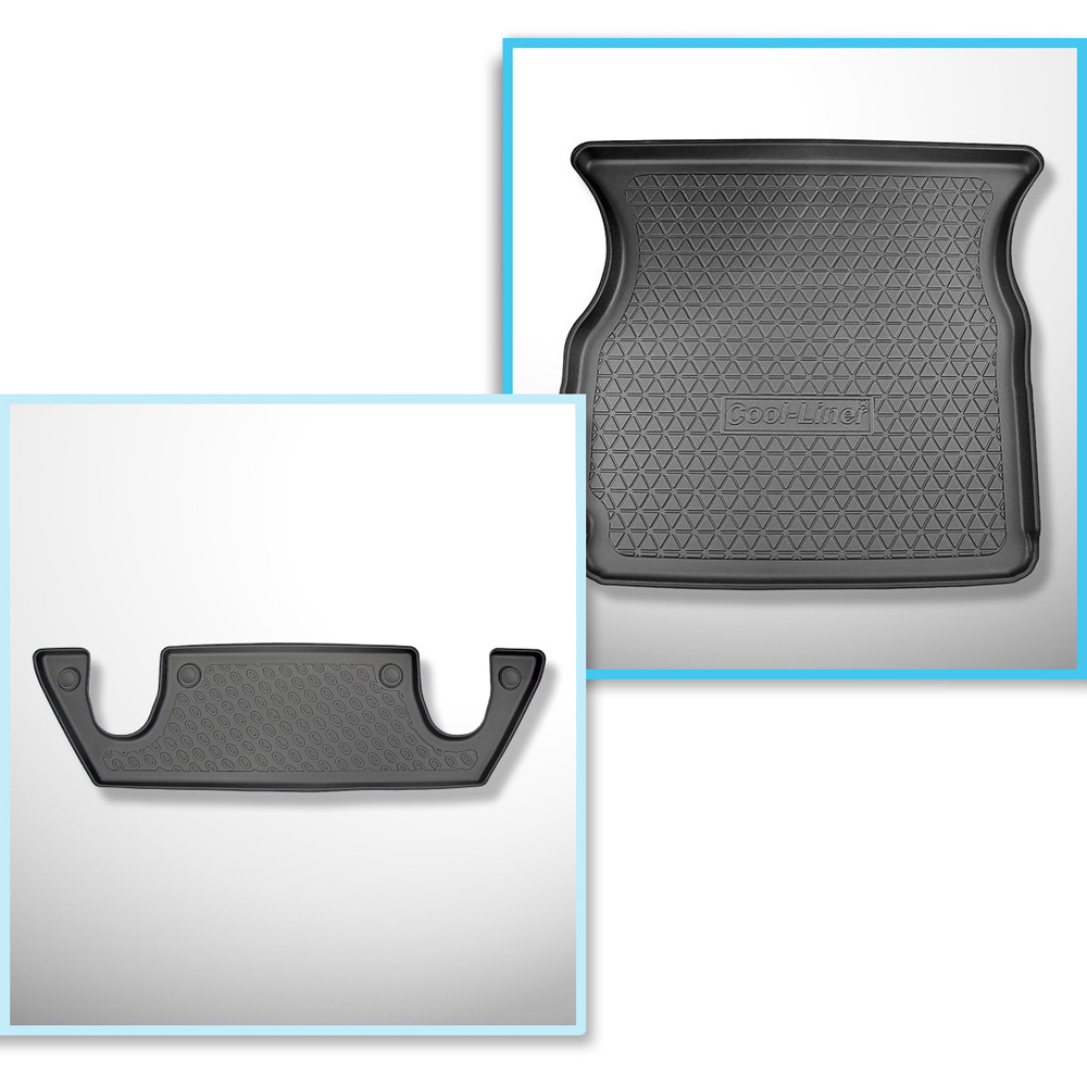 Set Kofferraumschale und angepasste Autoteppiche TPE für: Tesla Model X SUV (10.2016-12.2020) - 6 Sitze;3. Reihe;oberer Kofferraum (für Multiboden);hinter der 2. Sitzreihe (3. Reihe umgelegt)