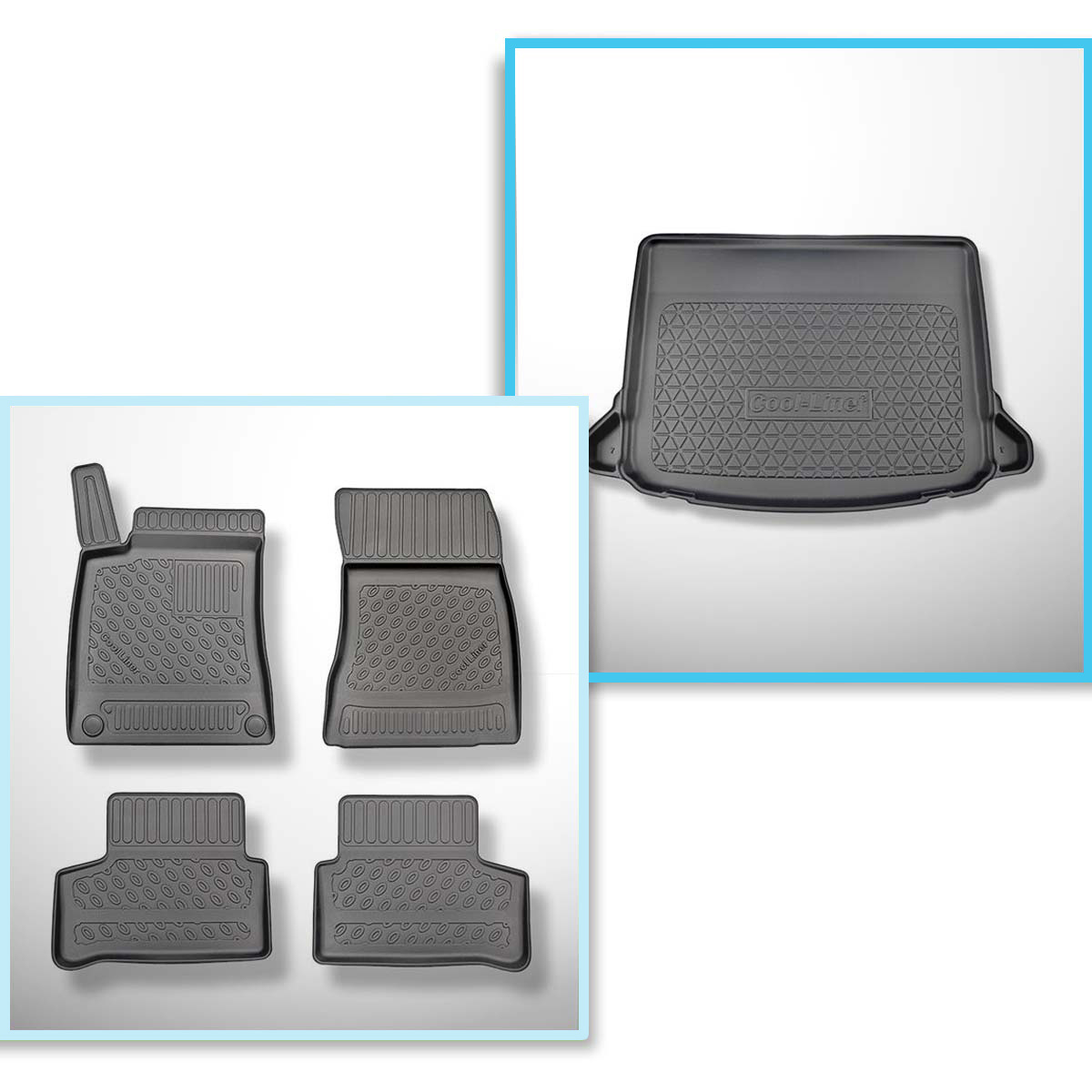 Set Kofferraumschale und angepasste Autoteppiche TPE PREMIUM für: Mercedes-Benz A Klasse W177 Hatchback (05.2018-....) - in Modellen mit Netztaschen Ausbuchtungen abschneidbar; nicht fuer Hybrid