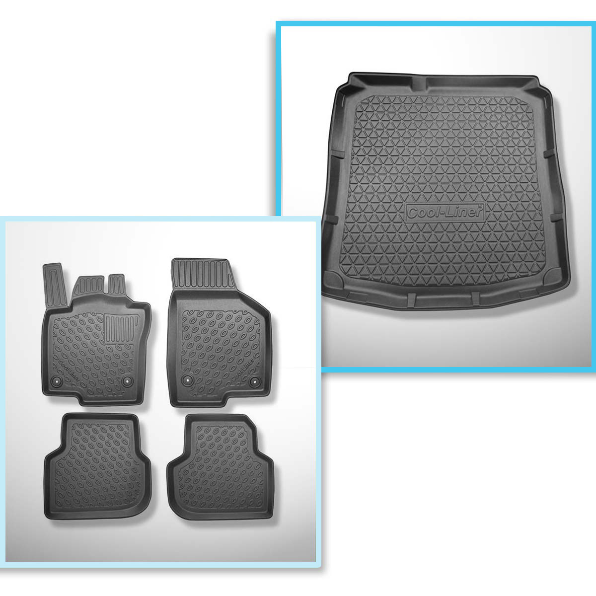 Set Kofferraumschale und angepasste Autoteppiche TPE PREMIUM für: Volkswagen Jetta NCS Limousine (01.2011-01.2018) - ohne linke und rechte Ausbuchtung