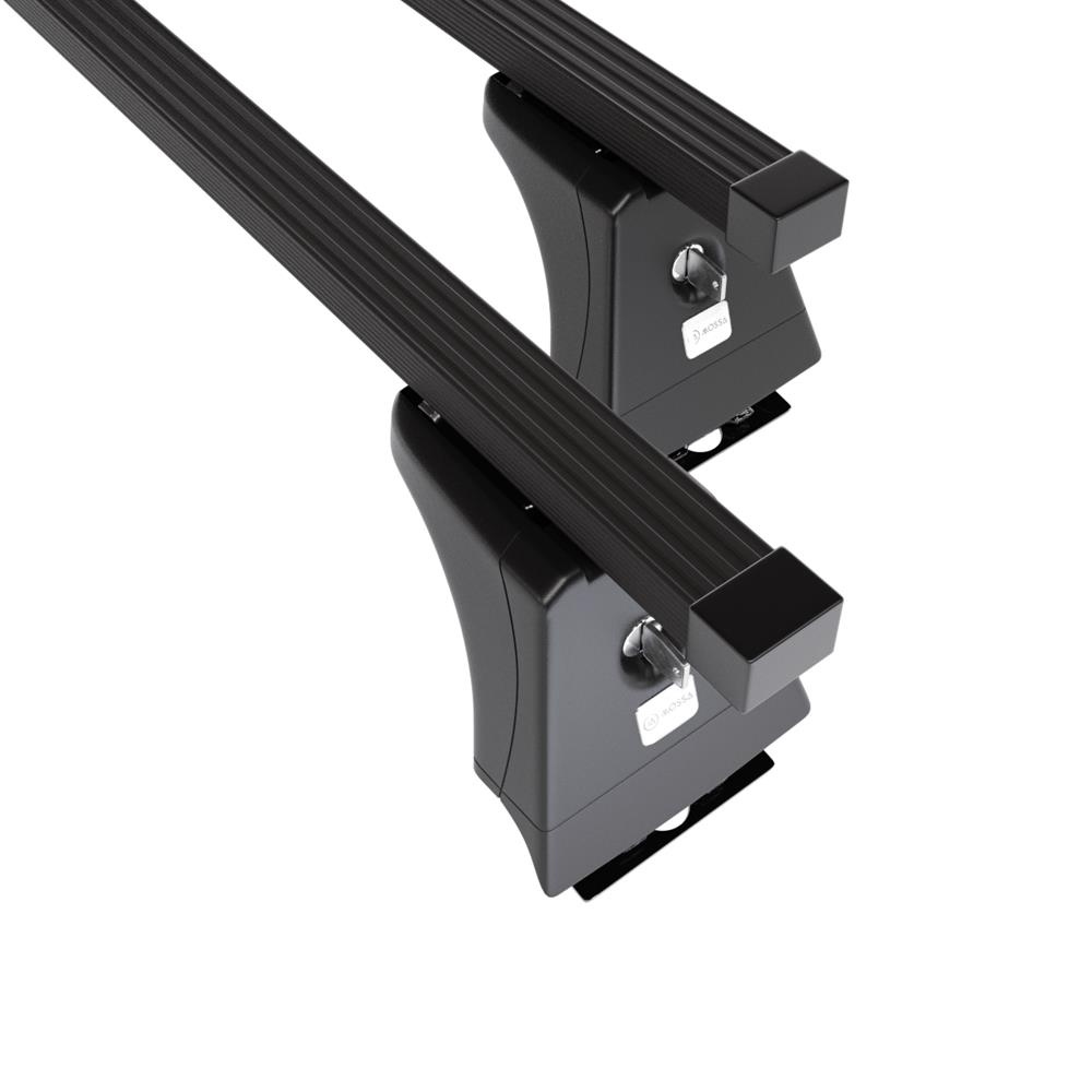 - Der Basisdachträger besteht aus 2 soliden Stahlbalken und 4 Haltern (sog. Fußsätze), die an den Typ und Generation des Fahrzeugs angepasst sind.