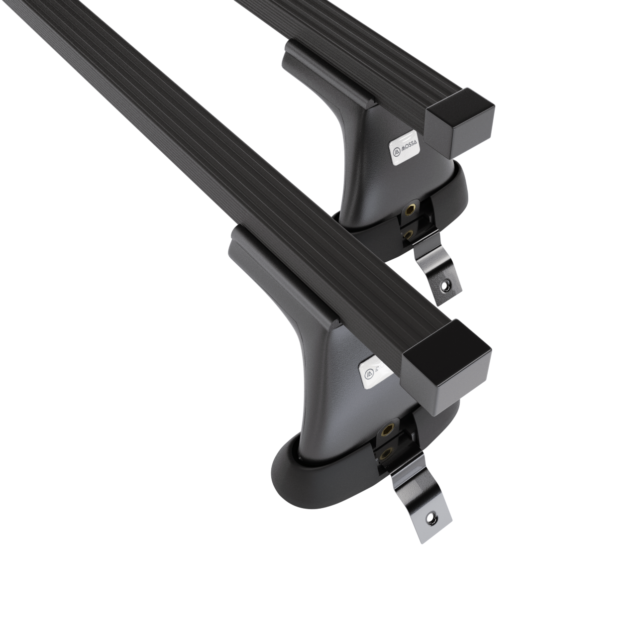 - Der Basisdachträger besteht aus 2 soliden Stahlbalken und 4 Haltern (sog. Fußsätze), die an den Typ und Generation des Fahrzeugs angepasst sind.