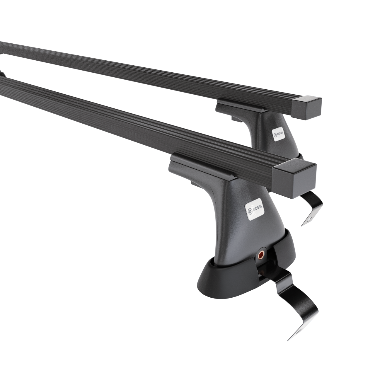 - Der Basisdachträger besteht aus 2 soliden Stahlbalken und 4 Haltern (sog. Fußsätze), die an den Typ und Generation des Fahrzeugs angepasst sind.