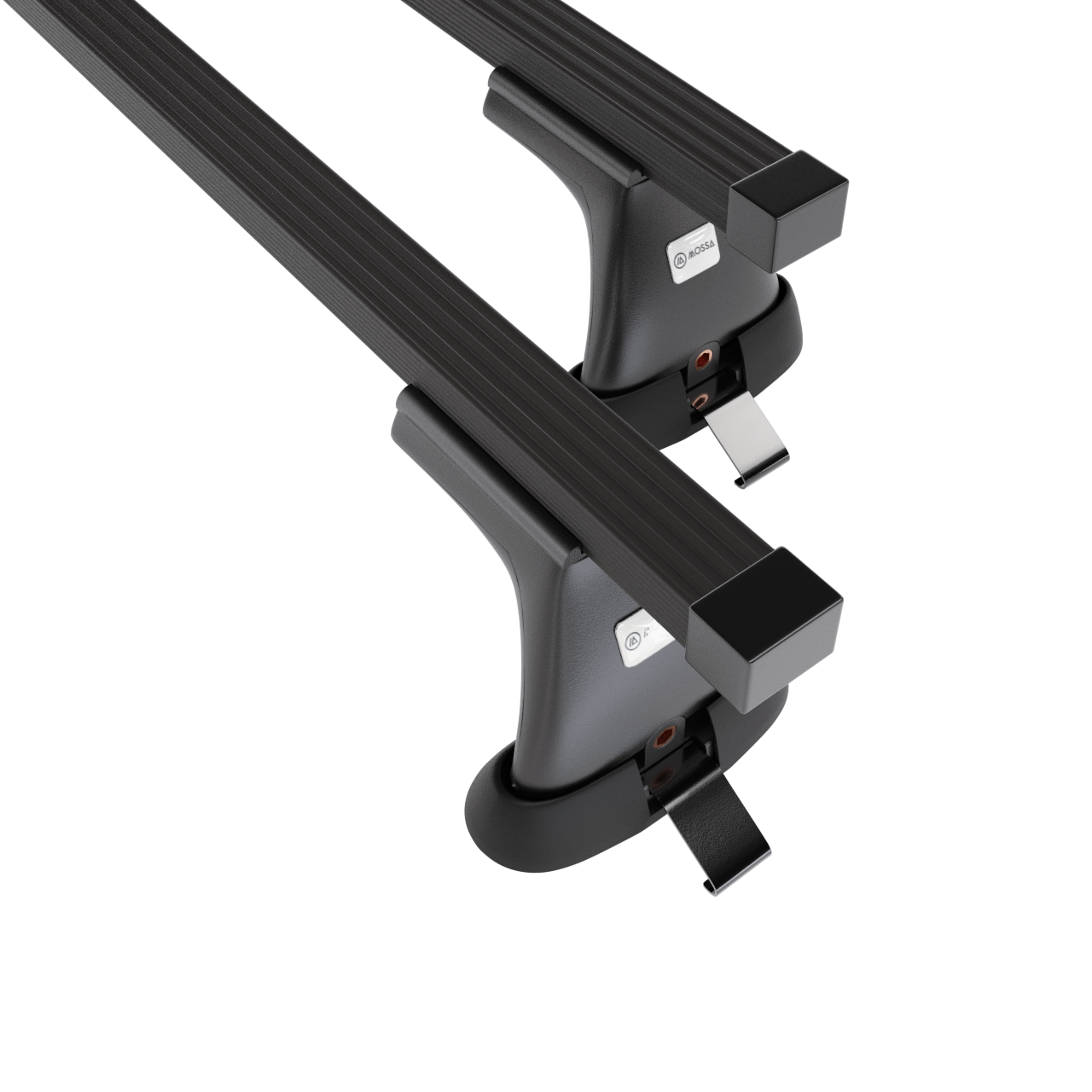 - Der Basisdachträger besteht aus 2 soliden Stahlbalken und 4 Haltern (sog. Fußsätze), die an den Typ und Generation des Fahrzeugs angepasst sind.