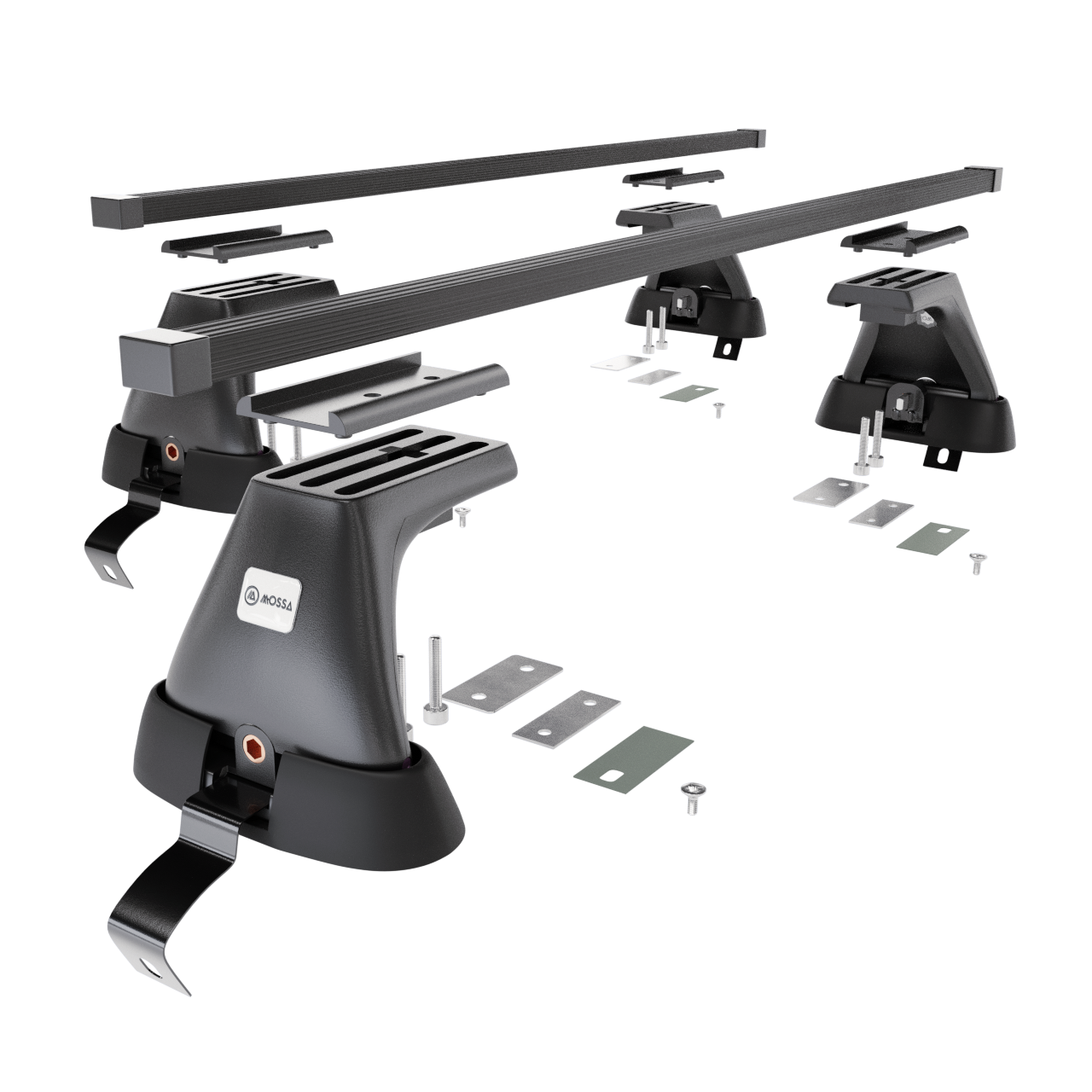 - 4 Fußsätze (Halter) – für standardmäßige Dächer ohne werkseitige Fixpunkte – Montage am Dachrand, Tragfähigkeit 75 kg (oder gem. Empfehlungen des Fahrzeugherstellers).