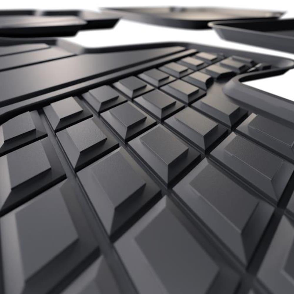 - Die Teppiche haben moderne Muster und mattes Finish. Jedes Set ist für das jeweilige Modell und Generation des Fahrzeugs bestimmt, was 100% Anpassung an den Fußboden des Autos garantiert. Im Set befinden sich auch Befestigungsclips, falls sie im jeweiligen Fahrzeugmodell vorgesehen sind.
