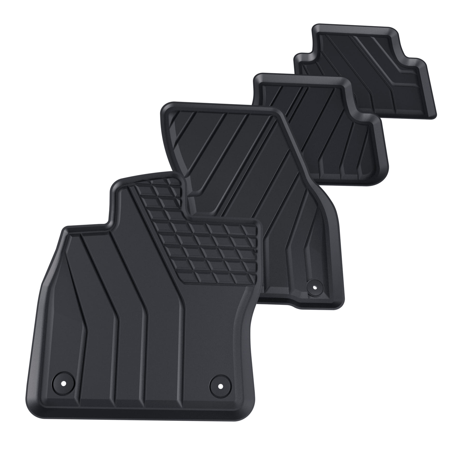 - Die Teppiche haben moderne Muster und mattes Finish. Jedes Set ist für das jeweilige Modell und Generation des Fahrzeugs bestimmt, was 100% Anpassung an den Fußboden des Autos garantiert. Im Set befinden sich auch Befestigungsclips, falls sie im jeweiligen Fahrzeugmodell vorgesehen sind.