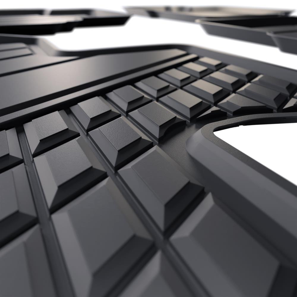 - Die Teppiche haben moderne Muster und mattes Finish. Jedes Set ist für das jeweilige Modell und Generation des Fahrzeugs bestimmt, was 100% Anpassung an den Fußboden des Autos garantiert. Im Set befinden sich auch Befestigungsclips, falls sie im jeweiligen Fahrzeugmodell vorgesehen sind.