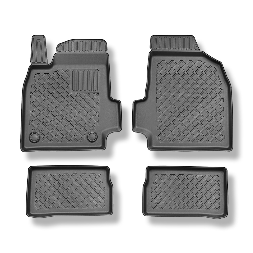 - Die Teppiche haben moderne Muster und mattes Finish. Jedes Set ist für das jeweilige Modell und Generation des Fahrzeugs bestimmt, was 100% Anpassung an den Fußboden des Autos garantiert. Im Set befinden sich auch Befestigungsclips, falls sie im jeweiligen Fahrzeugmodell vorgesehen sind.