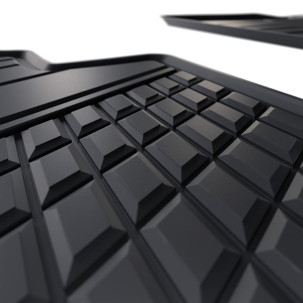 - Die Teppiche haben moderne Muster und mattes Finish. Jedes Set ist für das jeweilige Modell und Generation des Fahrzeugs bestimmt, was 100% Anpassung an den Fußboden des Autos garantiert. Im Set befinden sich auch Befestigungsclips, falls sie im jeweiligen Fahrzeugmodell vorgesehen sind.
