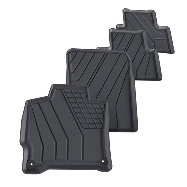 - Ideale Anpassung und Anwendung der vom Modell abhängigen Befestigung garantiert, dass die Teppiche während der Fahrt nicht verrutschen. Bei der Produktion werden die strengsten Qualitätsnormen eingehalten und die Materialien sind unbedenklich für Gesundheit und recyclebar. Die Teppiche sind wasserfest und leicht sauber zu halten (können unter laufendem Wasser oder mit Hochdruckreiniger gereinigt werden).