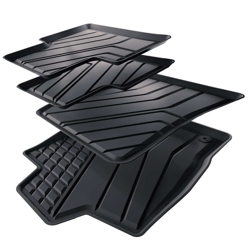 - Ideale Anpassung und Anwendung der vom Modell abhängigen Befestigung garantiert, dass die Teppiche während der Fahrt nicht verrutschen. Bei der Produktion werden die strengsten Qualitätsnormen eingehalten und die Materialien sind unbedenklich für Gesundheit und recyclebar. Die Teppiche sind wasserfest und leicht sauber zu halten (können unter laufendem Wasser oder mit Hochdruckreiniger gereinigt werden).