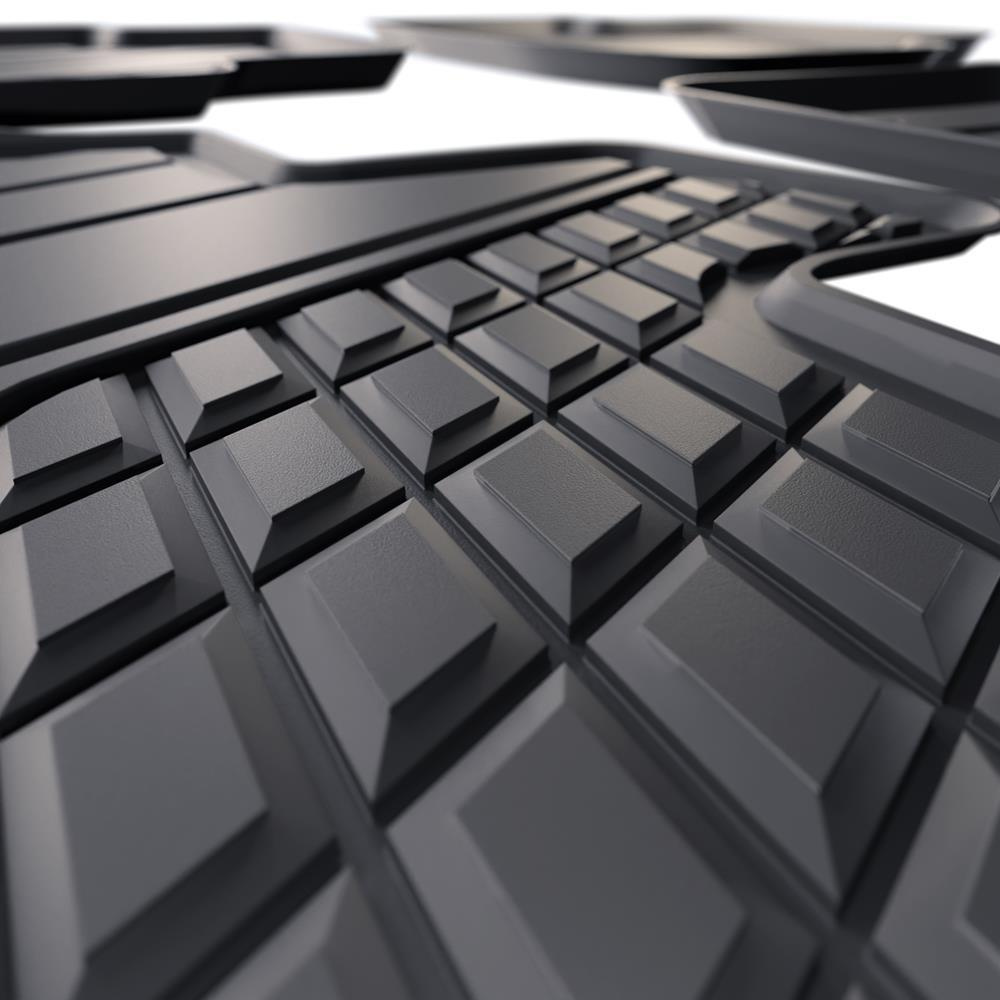 - Die Teppiche haben moderne Muster und mattes Finish. Jedes Set ist für das jeweilige Modell und Generation des Fahrzeugs bestimmt, was 100% Anpassung an den Fußboden des Autos garantiert. Im Set befinden sich auch Befestigungsclips, falls sie im jeweiligen Fahrzeugmodell vorgesehen sind.
