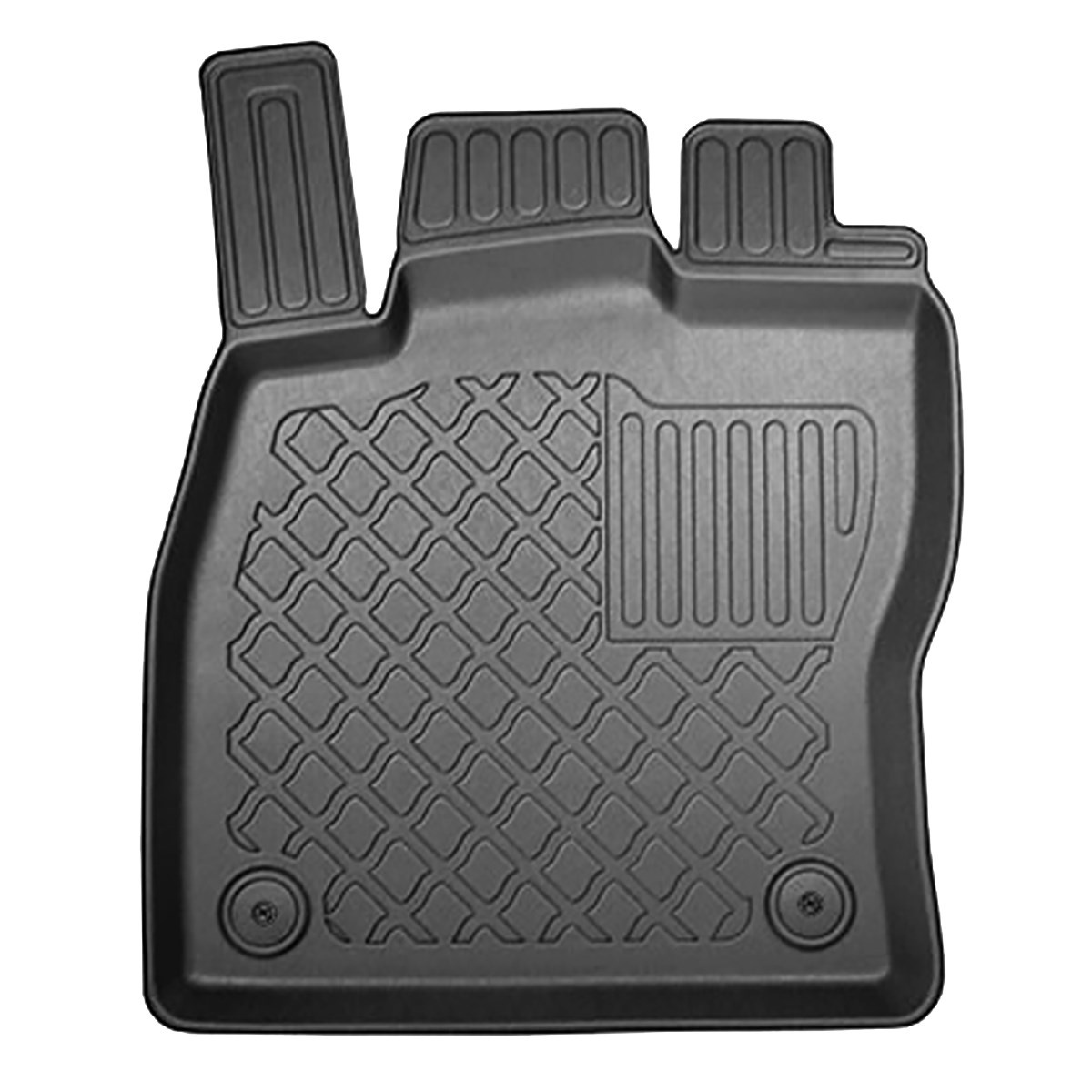 - Ideale Anpassung und Anwendung der vom Modell abhängigen Befestigung garantiert, dass die Teppiche während der Fahrt nicht verrutschen. Bei der Produktion werden die strengsten Qualitätsnormen eingehalten und die Materialien sind unbedenklich für Gesundheit und recyclebar. Die Teppiche sind wasserfest und leicht sauber zu halten (können unter laufendem Wasser oder mit Hochdruckreiniger gereinigt werden).