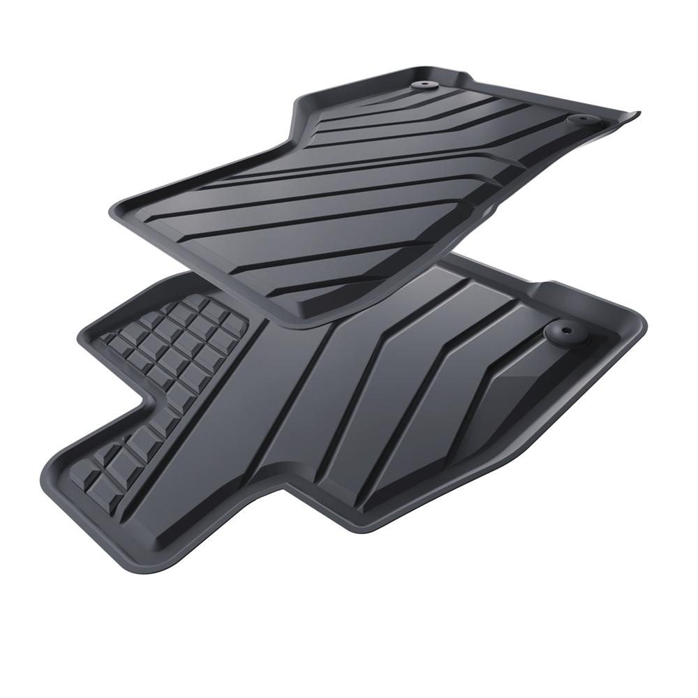 - Ideale Anpassung und Anwendung der vom Modell abhängigen Befestigung garantiert, dass die Teppiche während der Fahrt nicht verrutschen. Bei der Produktion werden die strengsten Qualitätsnormen eingehalten und die Materialien sind unbedenklich für Gesundheit und recyclebar. Die Teppiche sind wasserfest und leicht sauber zu halten (können unter laufendem Wasser oder mit Hochdruckreiniger gereinigt werden).