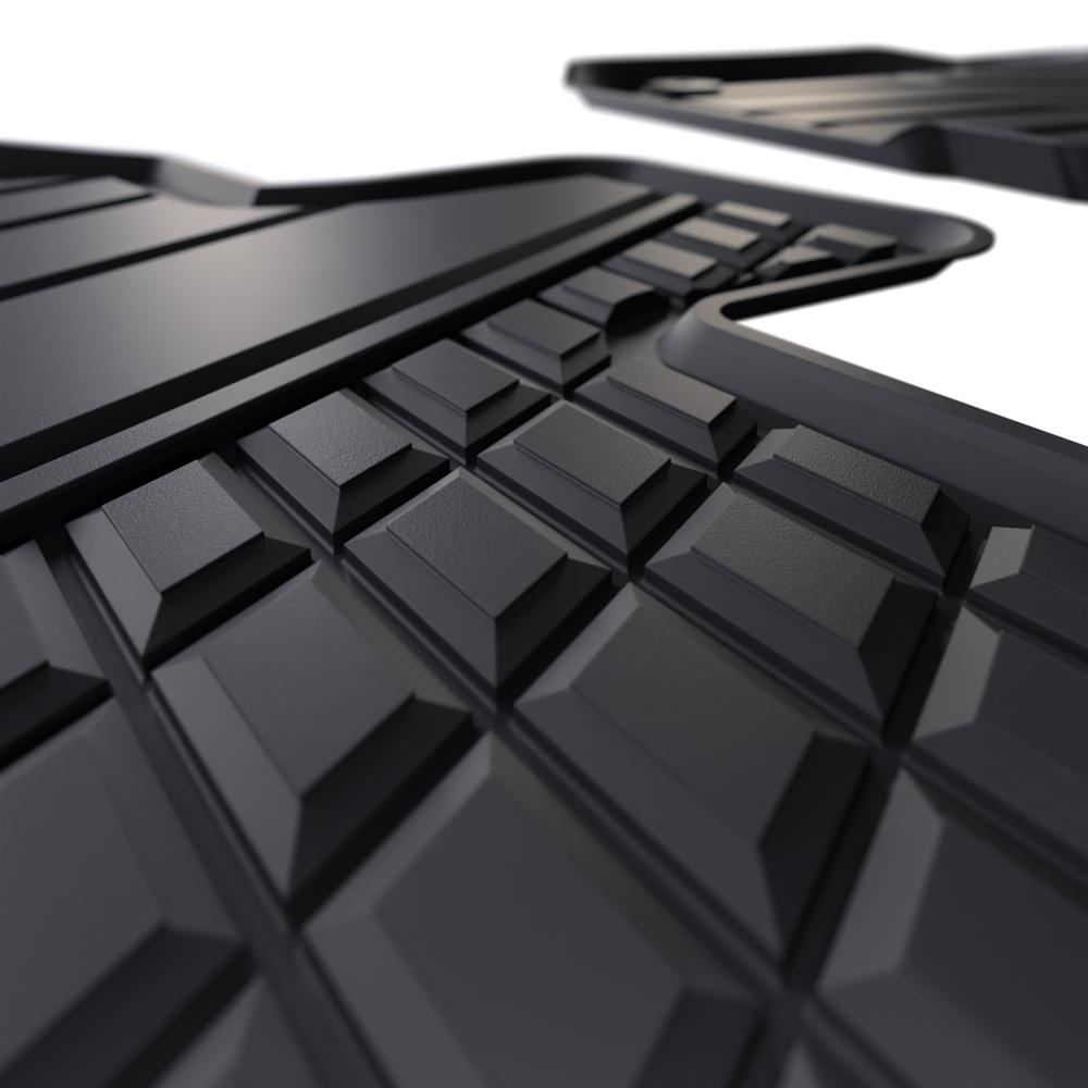 - Die Teppiche haben moderne Muster und mattes Finish. Jedes Set ist für das jeweilige Modell und Generation des Fahrzeugs bestimmt, was 100% Anpassung an den Fußboden des Autos garantiert. Im Set befinden sich auch Befestigungsclips, falls sie im jeweiligen Fahrzeugmodell vorgesehen sind.