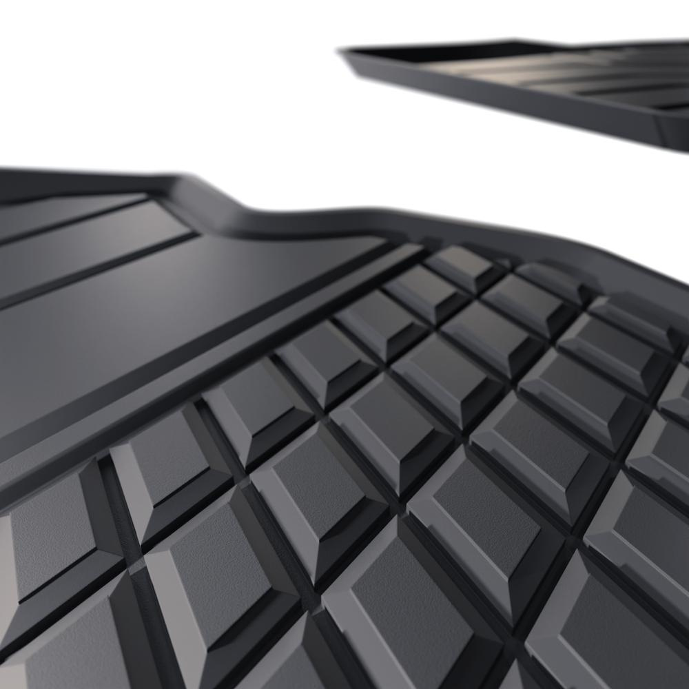 - Die Teppiche haben moderne Muster und mattes Finish. Jedes Set ist für das jeweilige Modell und Generation des Fahrzeugs bestimmt, was 100% Anpassung an den Fußboden des Autos garantiert. Im Set befinden sich auch Befestigungsclips, falls sie im jeweiligen Fahrzeugmodell vorgesehen sind.