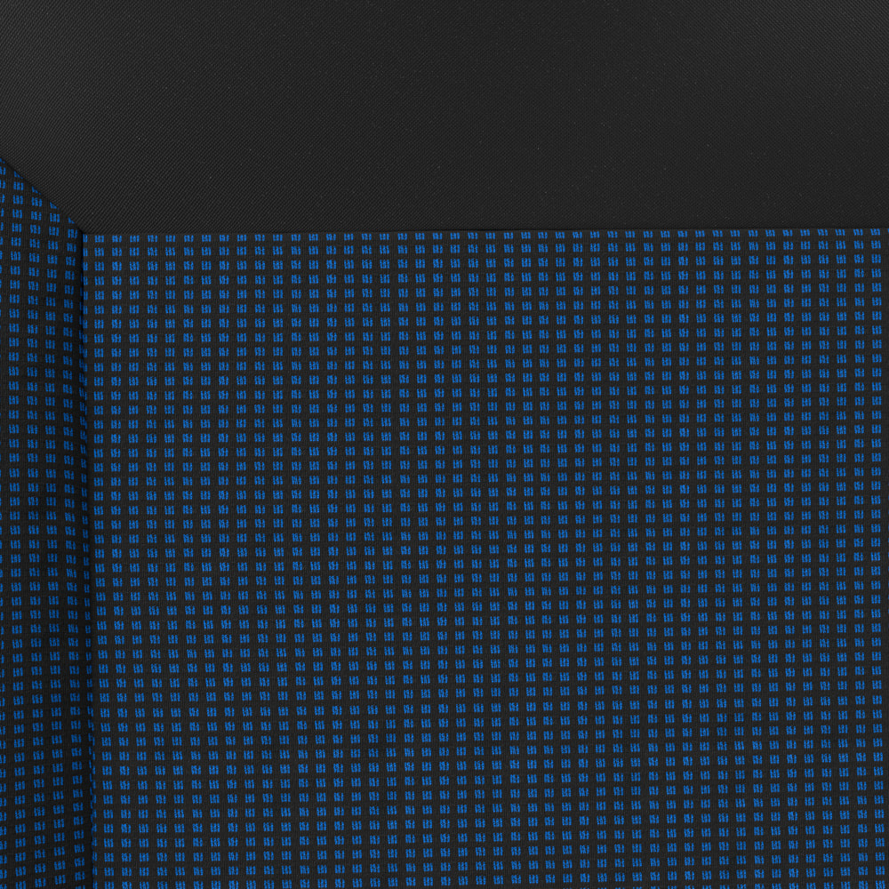 - Die Bezüge bestehen aus schwarzem Polsterstoff mit einem Jacquard-Einsatz in Blau in der Mitte.