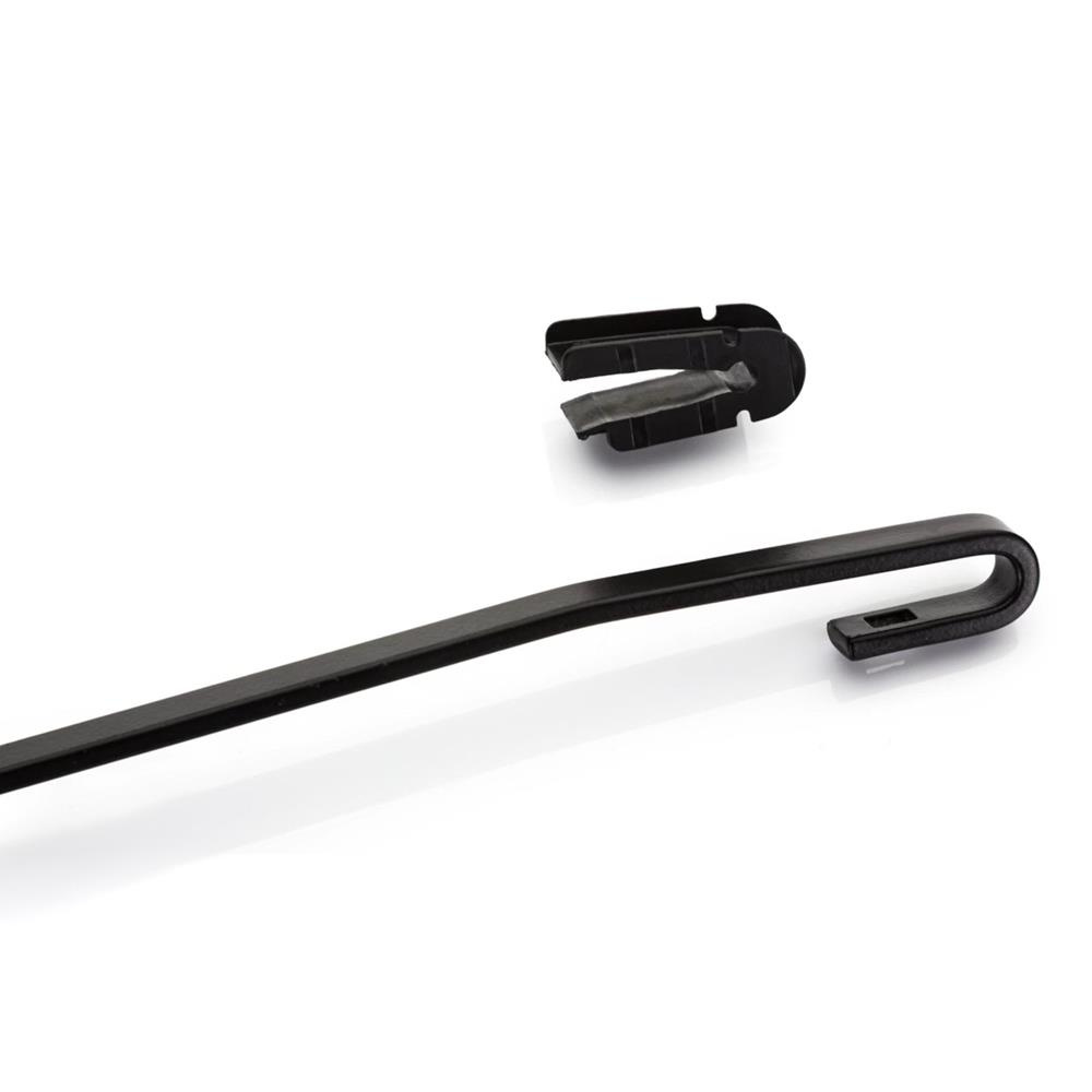 - Das Gummi wird aus einer Mischung aus natürlichem Kautschuk und Graphit hergestellt, was die Reibungsparameter verbessert und verursacht, dass die Scheibenwischer besonders leise laufen.
