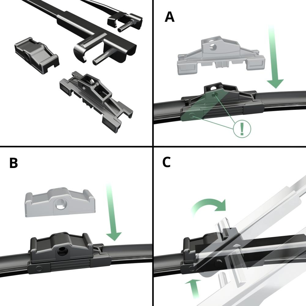 - Adapter-Satz (Elemente zur Verbindung der Wischerblätter mit dem Wischerarm): typ B \ typ D .